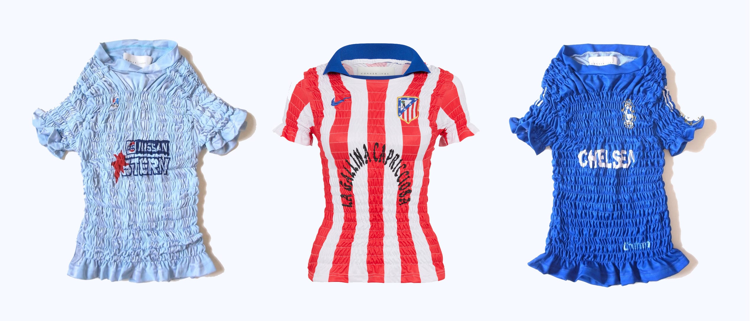 It started with the genuine articles, snatched from Ebay. But what I’ve loved so much is watching designers and brands take jerseys, coopted for fashion, and coopt them even further. Palard makes the jersey of your dreams for a team that doesn’t exist, technically gorgeous because they’re not beholden to any pre-ordained palette and they don’t have to put “Fly Emirates” across the chest. Conner Rives takes vintage football (British!!) jerseys and shirs them to perfection. The result makes me literally drool and I’ve been signed up for restock notifications for months. And in a complete snake-eating-tail twist, Full Kit Wankers source vintage jerseys and PRINT BAND NAMES ON THEM.